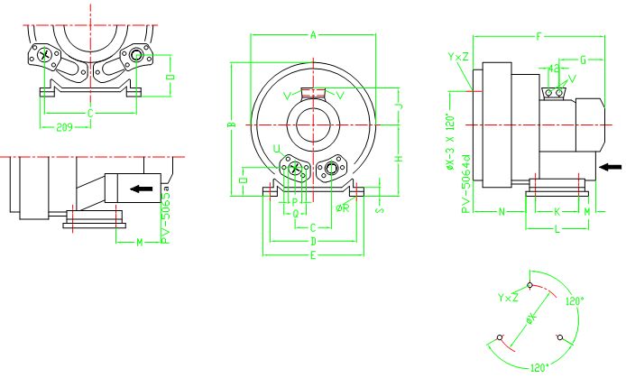 最大流量: 500 (m3/h) 最大吸力: -240 (mbar)
