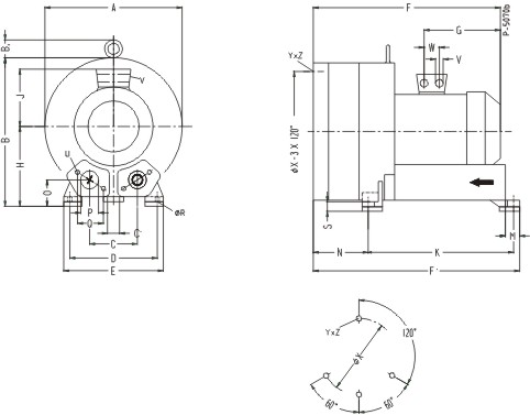 德冠品牌高壓風機產品尺寸表